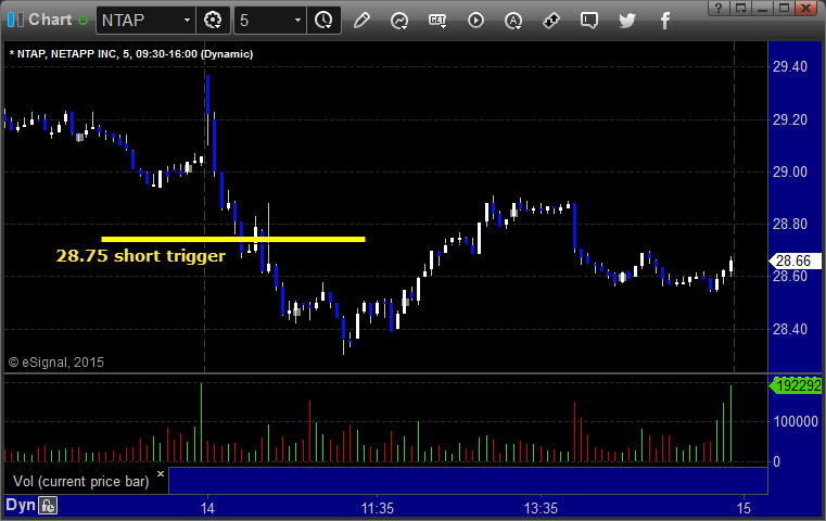 From the report, NTAP triggered short (with market support) and worked: