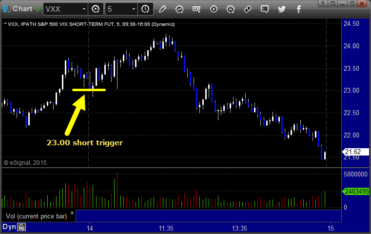 His VXX triggered short (ETF, so no market support needed) and didn't work, worked later: