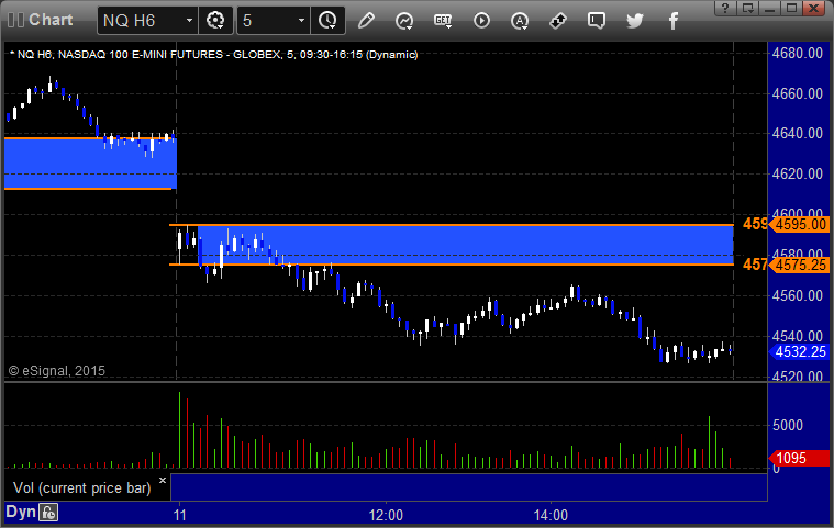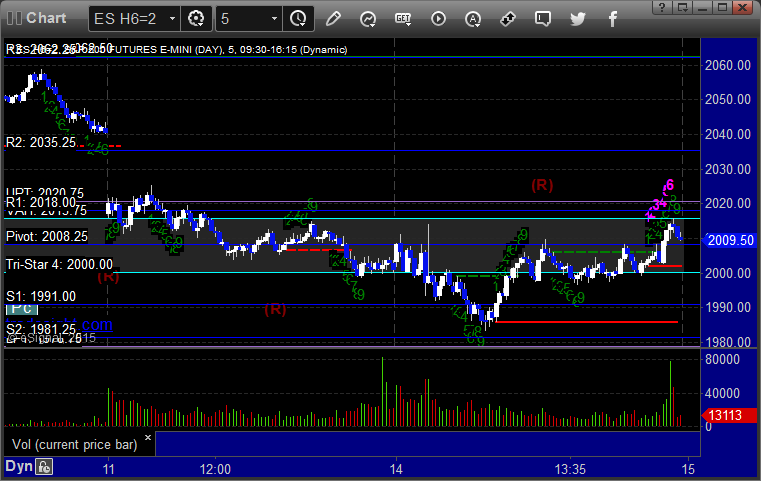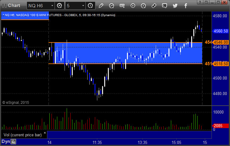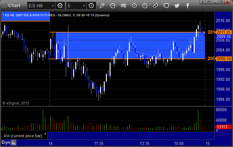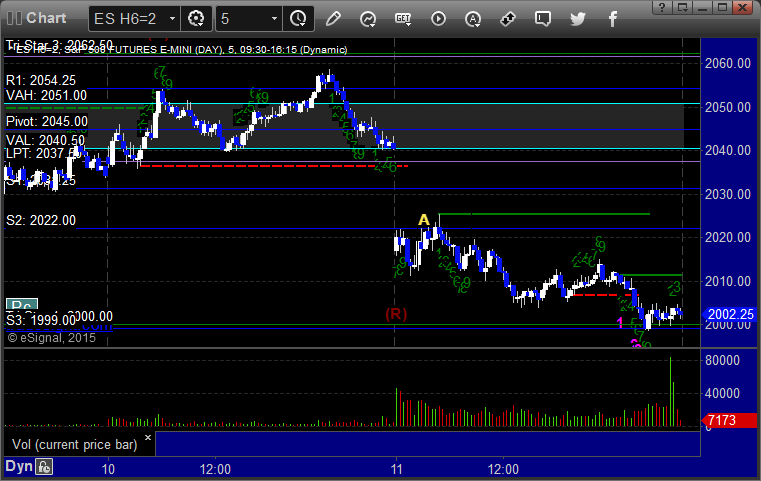 The markets gapped down big but you could tell the major players didn't participate, which is what we expect for quarterly contract roll. Nothing was very technical in behavior, and we drifted lower over lunch before coming back up to the VWAP. NASDAQ volume closed at 1.9 billion shares. I wasn't going to make any calls, but I ended up doing one anyway, and it stopped once and worked the second time. Opening ranges weren't really useful either. Back to it on Monday.