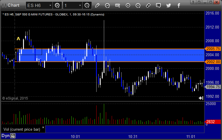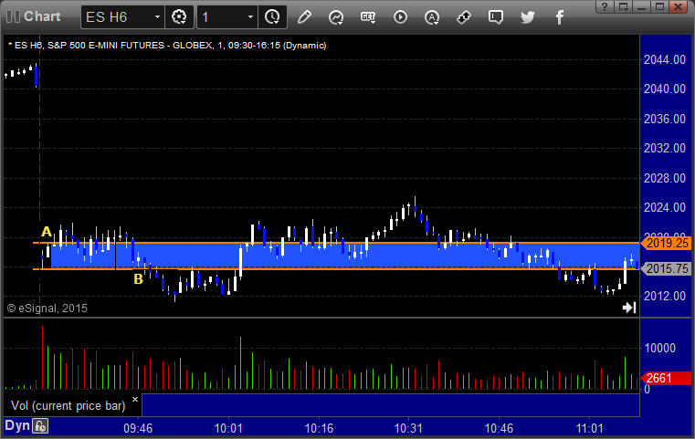 ES Opening Range Play triggered at A but was too far outside of the range for me to take: