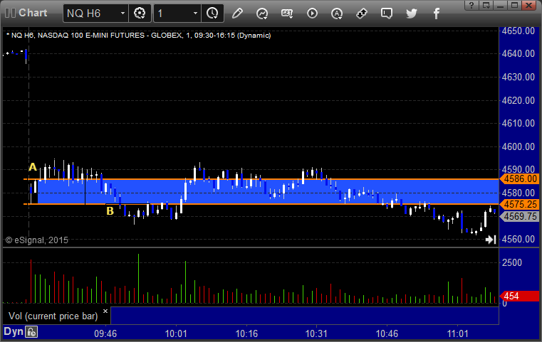 NQ Opening Range Play triggered long at A and didn't work, triggered short at B and did: