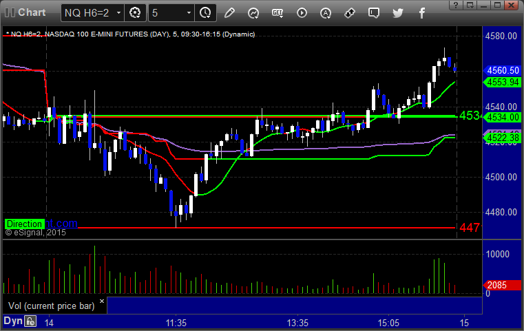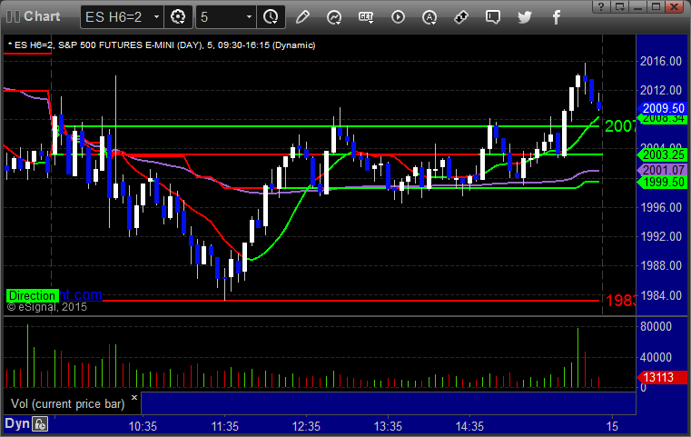 As usual, let's start by taking a look at the ES and NQ with our market directional lines, VWAP, and Comber on the 5-minute chart from today's session:
