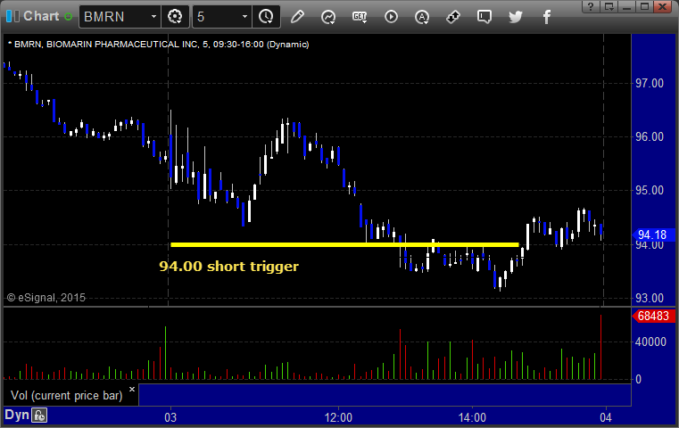 BMRN triggered short (with market support) and worked: