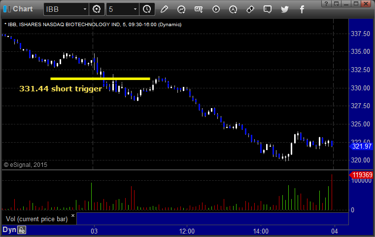 Rich's IBB triggered short (ETF, so no market support needed) and worked: