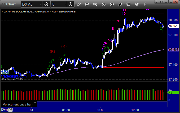 Here's a look at the US Dollar Index intraday with our market directional lines: