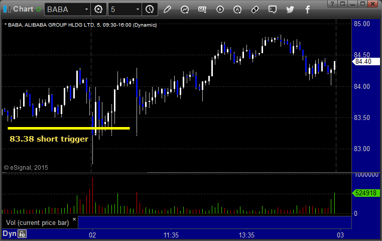 From the Messenger/Tradesight_st Twitter Feed, Rich's BABA triggered short (without market support) and worked enough for a partial: