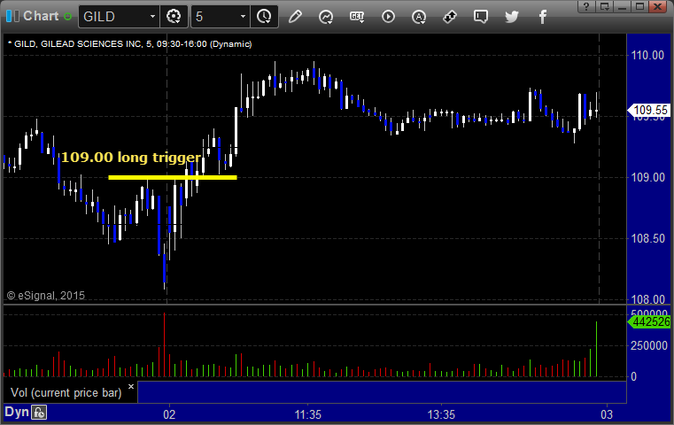 Mark's GILD triggered long (with market support) and worked: