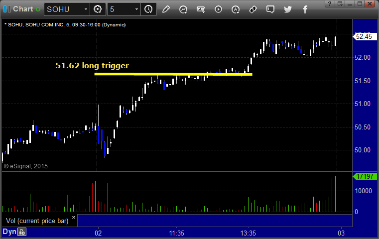 From the report, SOHU triggered long (with market support) and worked great: