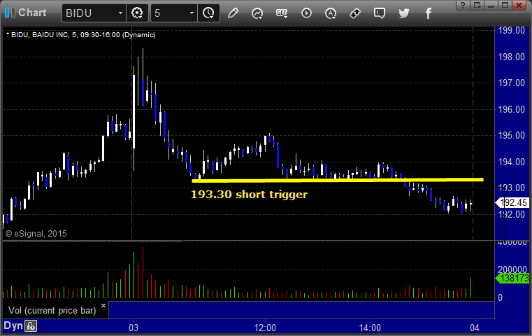 From the Messenger/Tradesight_st Twitter Feed, Rich's BIDU triggered long (without market support) and worked enough for a partial: