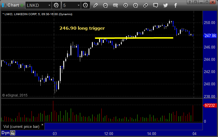 His LNKD triggered long (with market support) and worked: