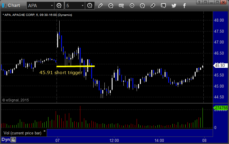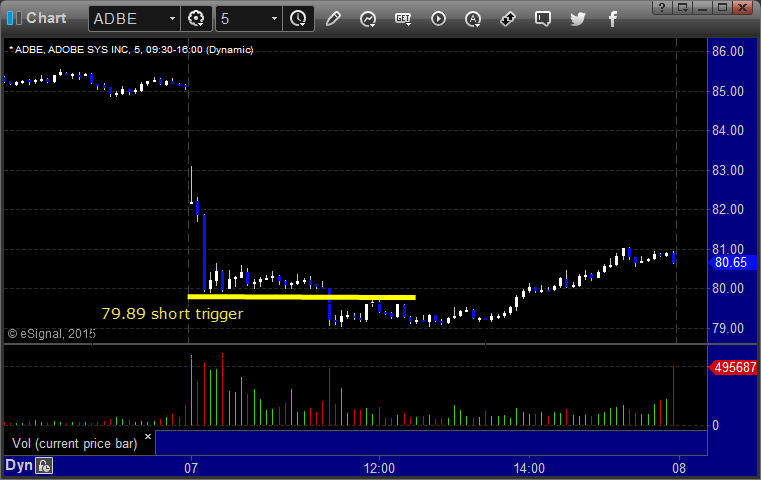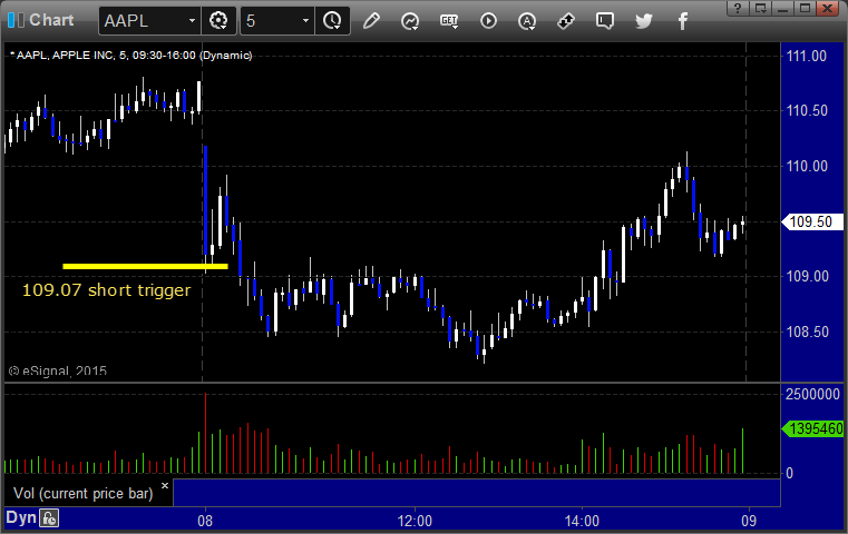From the Messenger/Tradesight_st Twitter Feed, Rich's AAPL triggered short (without market support due to opening 5 minutes) and didn't work, worked later: