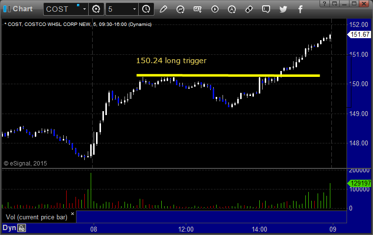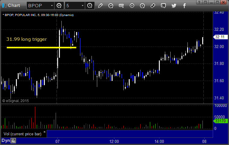 With each stock's recap, we will include a (with market support) or (without market support) tag, designating whether the trade triggered with or without market directional support at the time. Anything in the first five minutes will be considered WITHOUT market support because market direction cannot be determined that early. ETF calls do not require market support, and are thus either winners or losers.