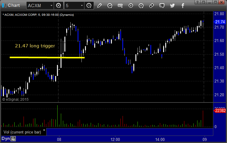 From the report, ACXM triggered long (with market support) and worked enough for a partial: