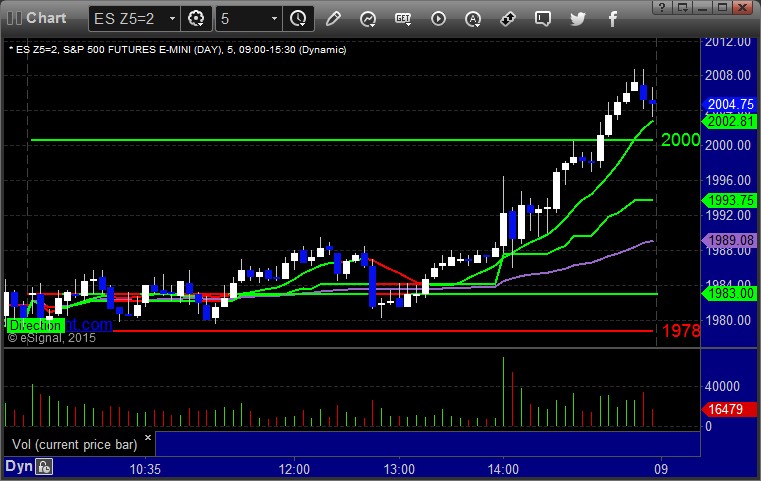 As usual, let's start by taking a look at the ES and NQ with our market directional lines, VWAP, and Comber on the 5-minute chart from today's session: