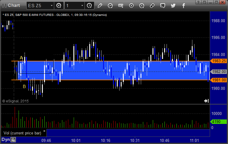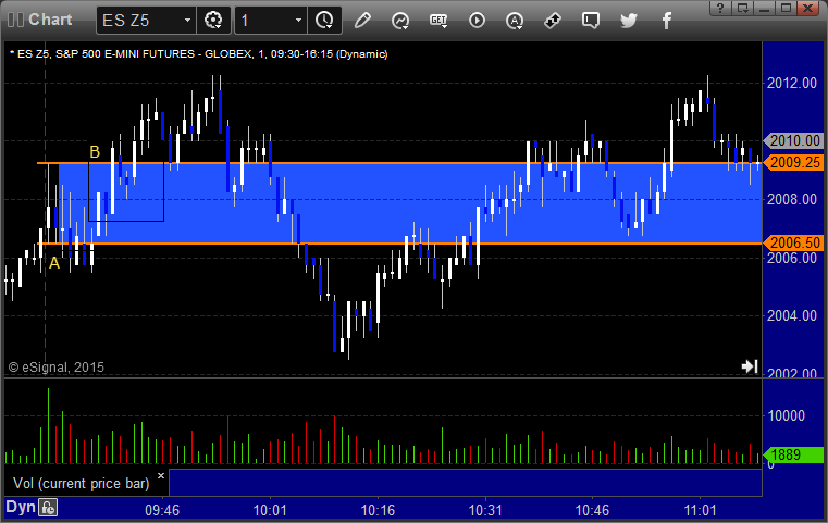 ES Opening Range Play triggered long at A and stopped, triggered short at B and stopped:
