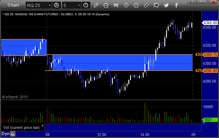 The markets gapped up, pushed a little higher, then rolled over and gave us a perfect Value Area/Gap Fill play and that was the range for the session on 1.7 billion NASDAQ shares.