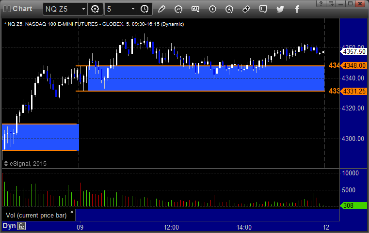 The markets opened fairly flat and it was a much duller session to close out the week. We had a nice trade setup on the ES for the Value Area, but that call didn't trigger. Mixed results out of the Opening Range plays. NASDAQ volume closed at 1.6 billion shares, but even that was boosted by some excessive volume in one stock.