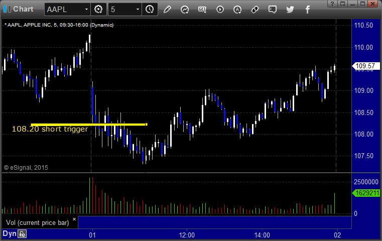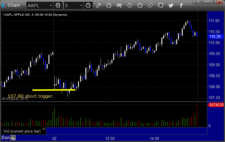 From the Messenger/Tradesight_st Twitter Feed, Rich's AAPL triggered short (with market support) and didn't work: