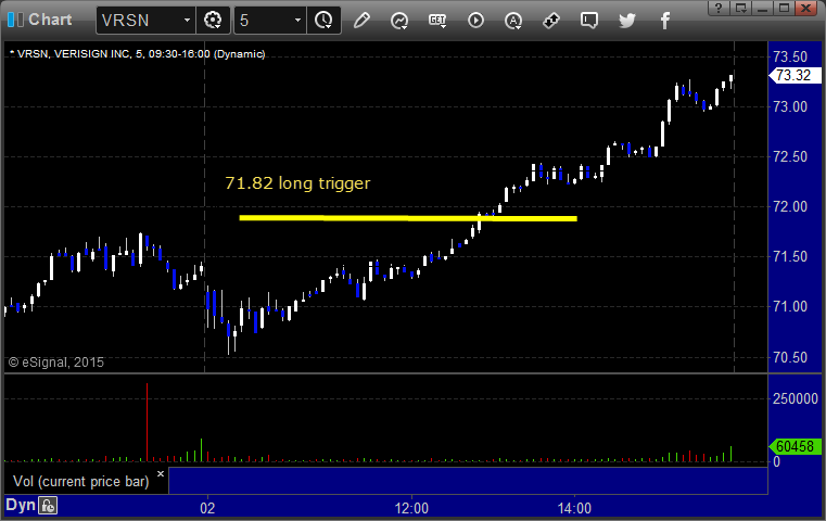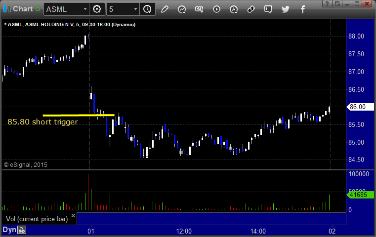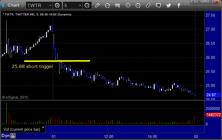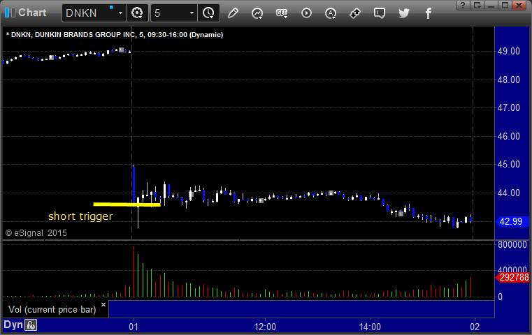 From the Messenger/Tradesight_st Twitter Feed, Rich's DNKN triggered short (with market support) and worked enough for a partial: