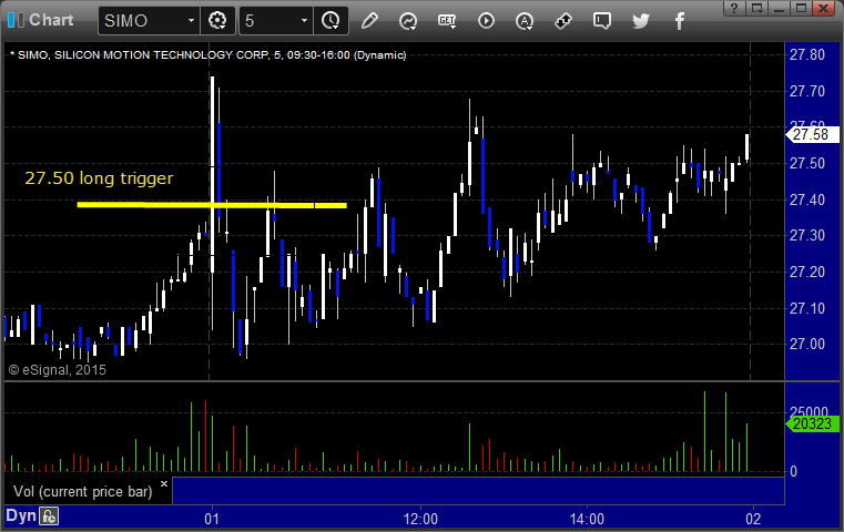From the report, SIMO triggered long (without market support due to opening 5 minutes) and worked enough for a partial: