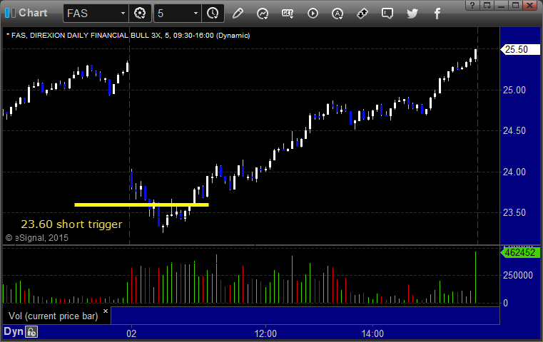 His FAS triggered short (ETF, so no market support needed) and worked enough for a partial: