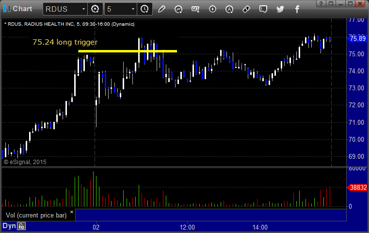 With each stock's recap, we will include a (with market support) or (without market support) tag, designating whether the trade triggered with or without market directional support at the time. Anything in the first five minutes will be considered WITHOUT market support because market direction cannot be determined that early. ETF calls do not require market support, and are thus either winners or losers.