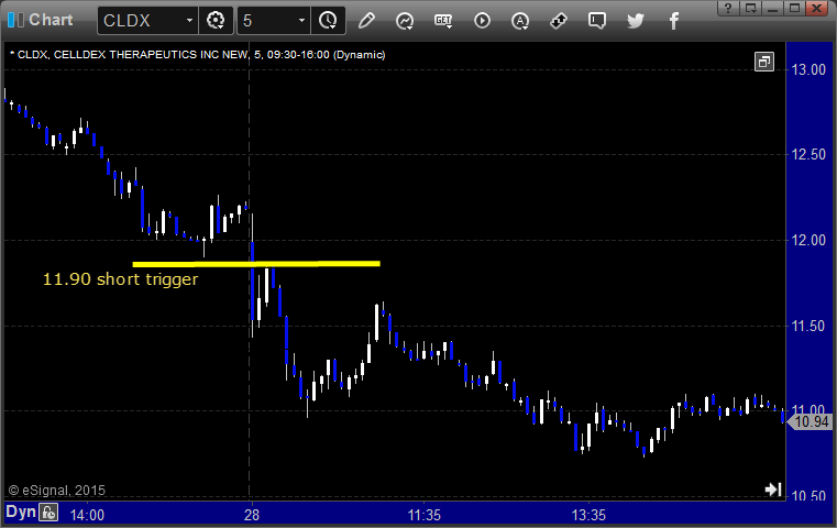 CLDX triggered short (without market support due to opening 5 minutes) and worked: