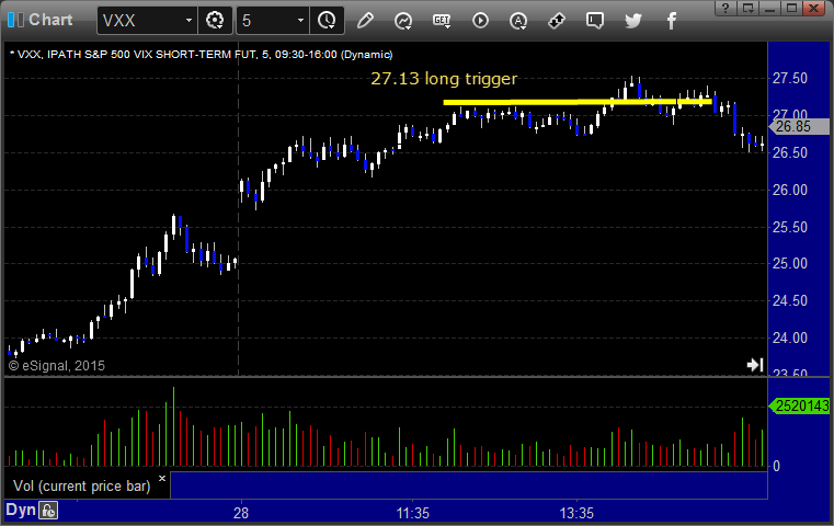 His VXX triggered long (ETF, so no market support needed) and worked enough for a partial: