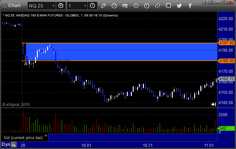 The markets opened fairly flat and closed even after dipping lower on 2.1 billion NASDAQ shares. It was a decent volume day and that's it. We had Mark's trade trigger in the NQ and he didn't put it back in and it worked later. Meanwhile the Opening Range Plays worked.
