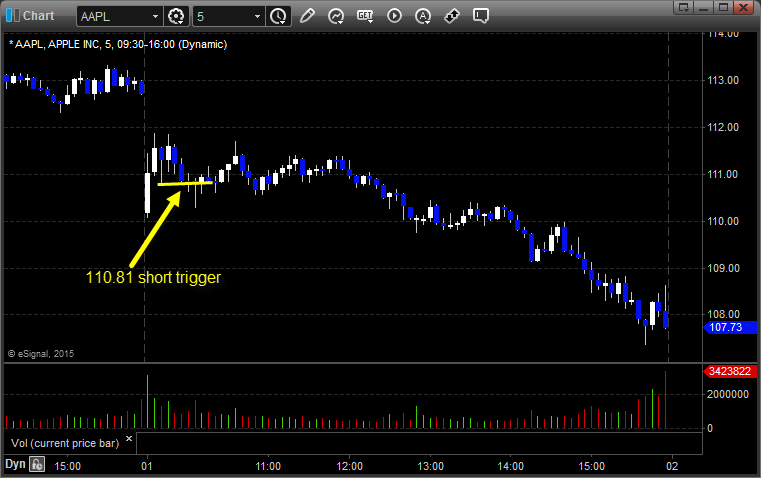 From the Messenger/Tradesight_st Twitter Feed, Rich's AAPL triggered short (with market support) and didn't work: