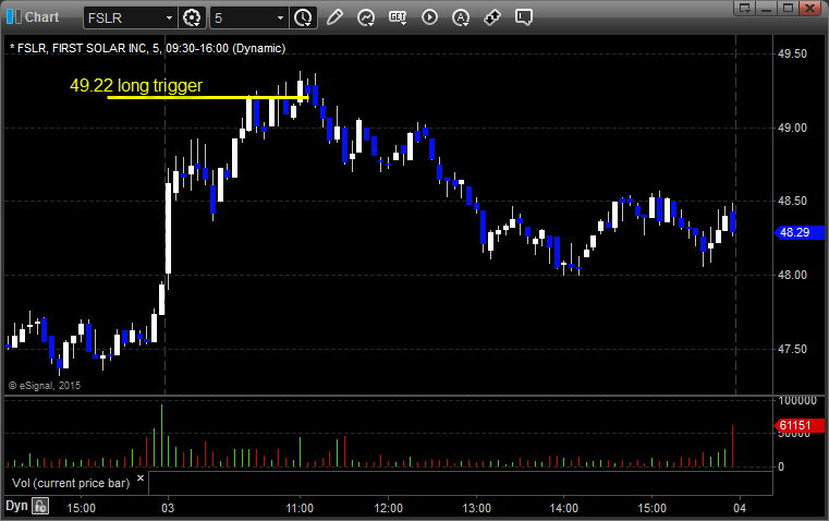 FSLR triggered long (with market support) and didn't work, but it triggered right at the 13 sell signal on the broad market: