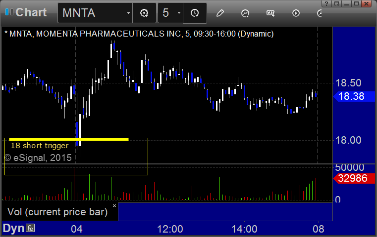 From the report, MNTA triggered short (without market support due to opening 5 minutes) and didn't work: