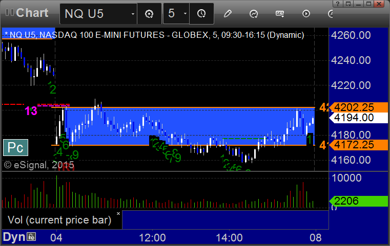 Just a reminder that we use half points for ticks on the NQ and not the quarter point measurement that the exchanges switched to in recent years. This allows us to use 6 ticks as a key target as we do on the other contracts. It also keeps the value of a tick at $10, closer to the value of a tick on the other contracts.