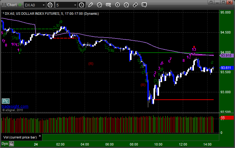 Here's a look at the US Dollar Index intraday with our market directional lines: