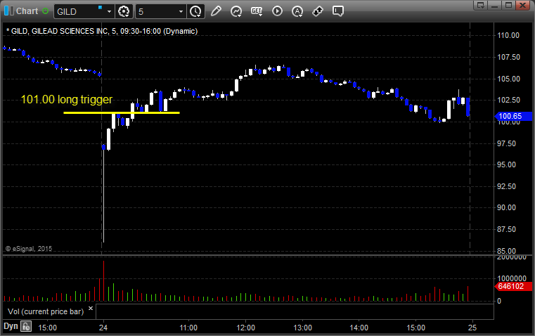 GILD triggered long (without market support because I stated that futures should take out the highs first) and worked: