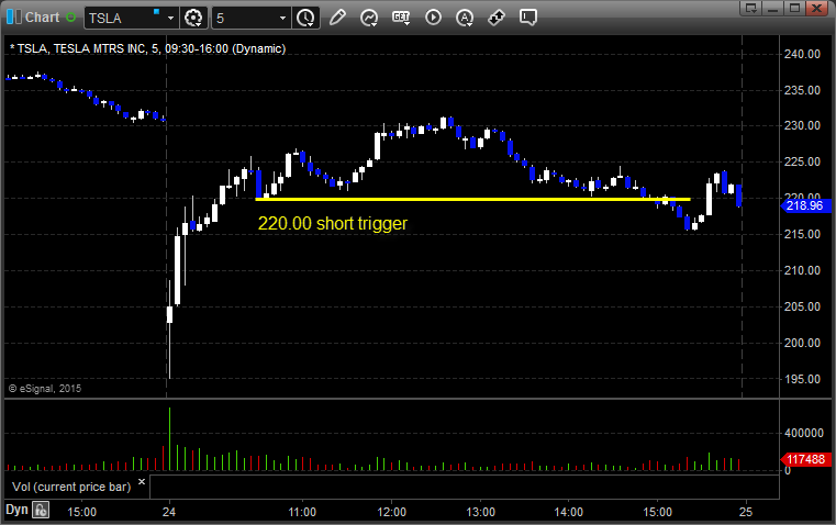 The markets gapped up after the plunge on Monday and held up until after lunch in fairly tight range and then sold off sharply for the last hour to close in the red on 2.4 billion NASDAQ shares. The Opening Range plays worked great, so there was no need for main calls in the flat action. See that section below as we continue to take the easy trades in this volatility.