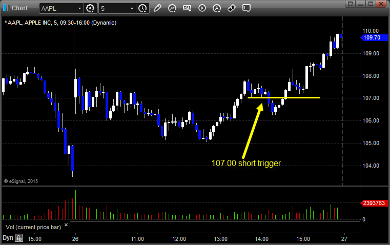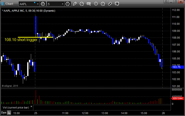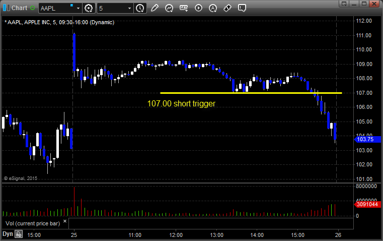 Rich's AAPL triggered short (without market support) and worked enough for a partial: