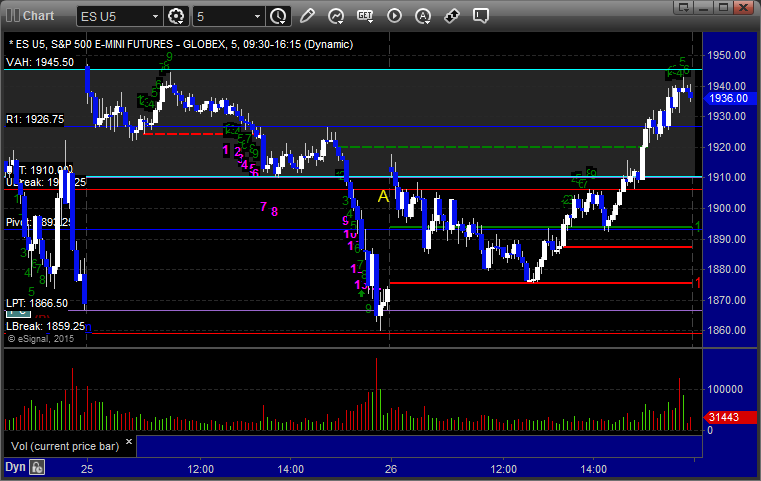 Triggered short at A at 1906.00, hit first target for 6 ticks, stopped second half over entry: