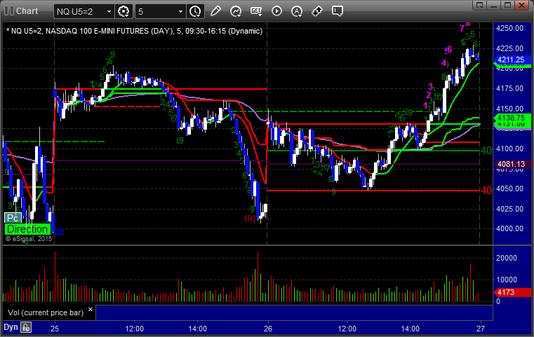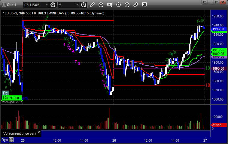 As usual, let's start by taking a look at the ES and NQ with our market directional lines, VWAP, and Comber on the 5-minute chart from today's session: