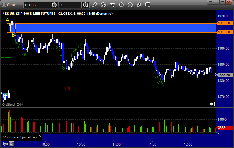 ES Opening Range Play triggered long at A and didn't work, triggered short at B and did: