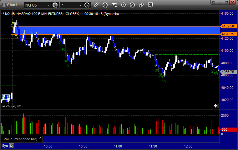 NQ Opening Range Play triggered long at A but was way too far outside the range to take: