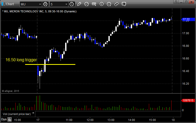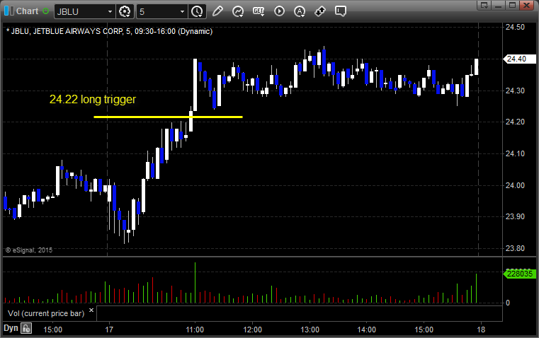 With each stock's recap, we will include a (with market support) or (without market support) tag, designating whether the trade triggered with or without market directional support at the time. Anything in the first five minutes will be considered WITHOUT market support because market direction cannot be determined that early. ETF calls do not require market support, and are thus either winners or losers.