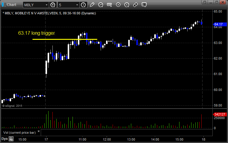 His MBLY triggered long (with market support) and worked enough for a partial: