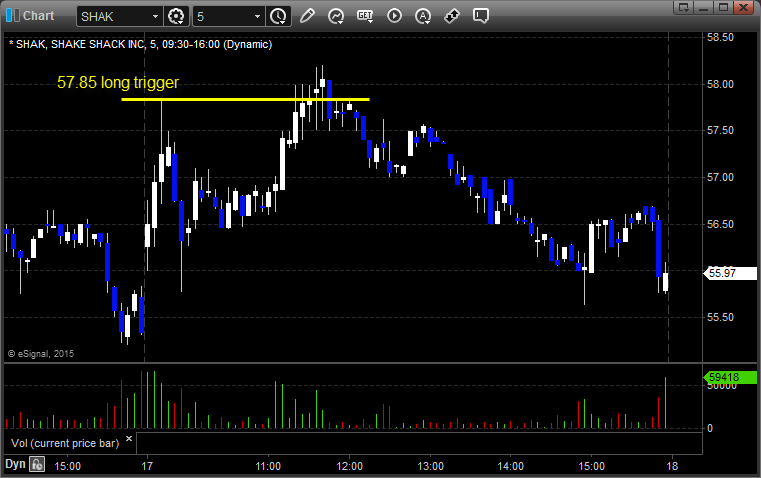From the Messenger/Tradesight_st Twitter Feed, Mark's SHAK triggered long (with market support) and worked enough for a partial:
