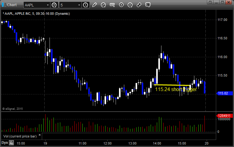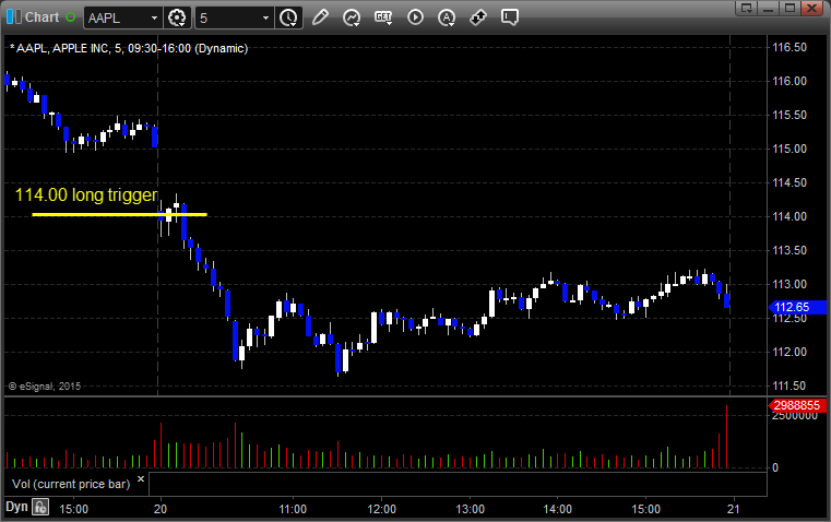 His AAPL triggered long (without market support due to opening 5 minutes) and didn't work: