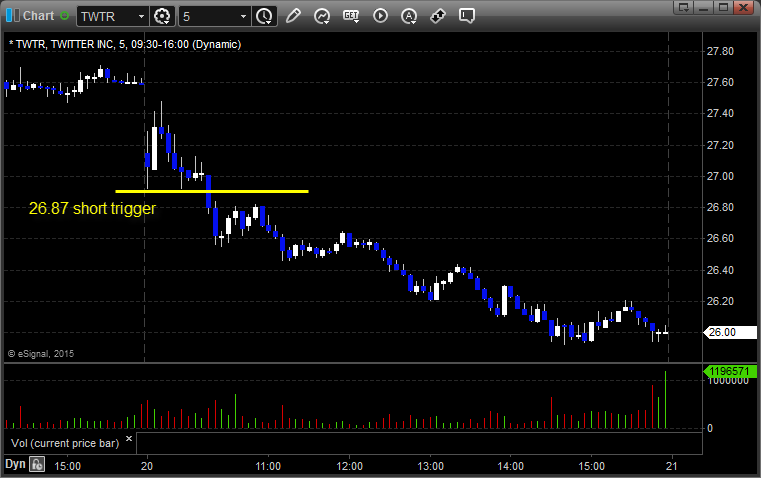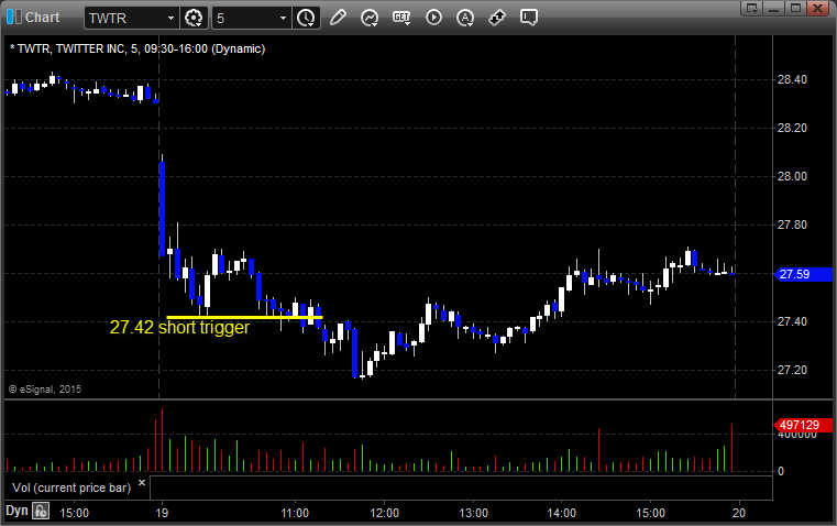 His TWTR triggered short (with market support) and worked enough for a partial: