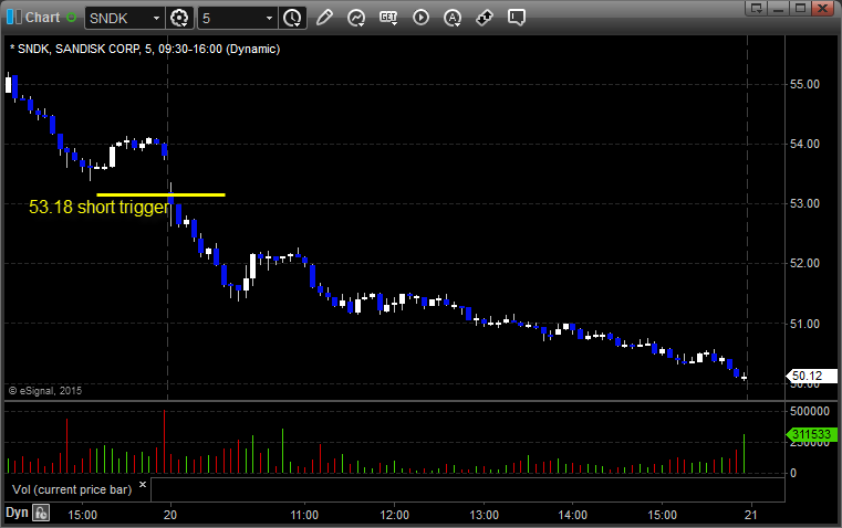 SNDK triggered short (without market support due to opening 5 minutes) and worked: