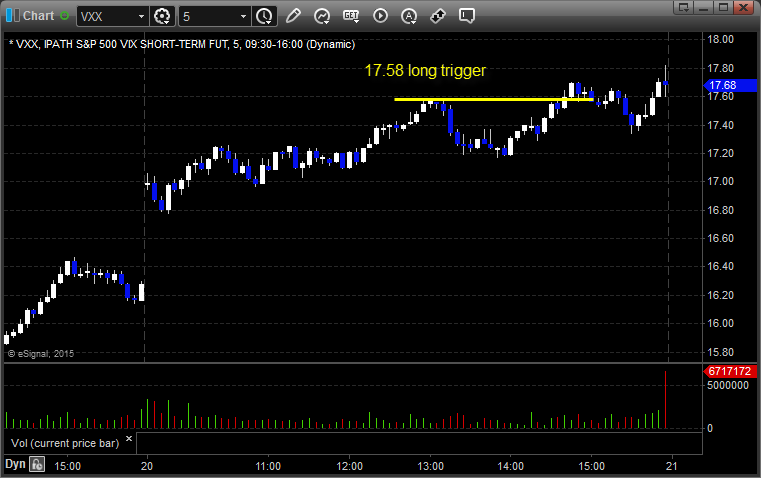 His VXX triggered long (ETF, so no market support needed) and didn't go enough either way to count: