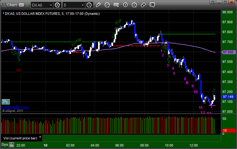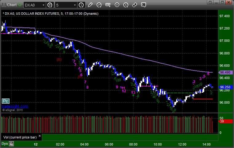 Here's a look at the US Dollar Index intraday with our market directional lines: