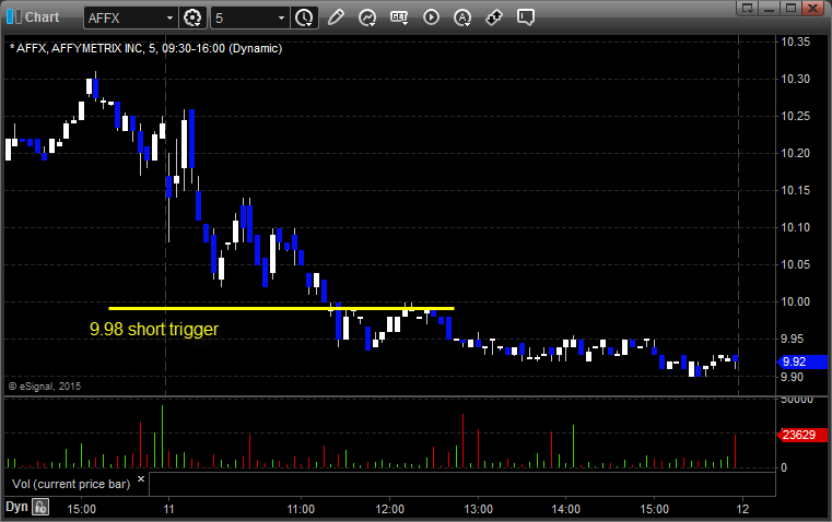 From the report, AFFX triggered short (with market support) and held in the money all day but didn't go far: